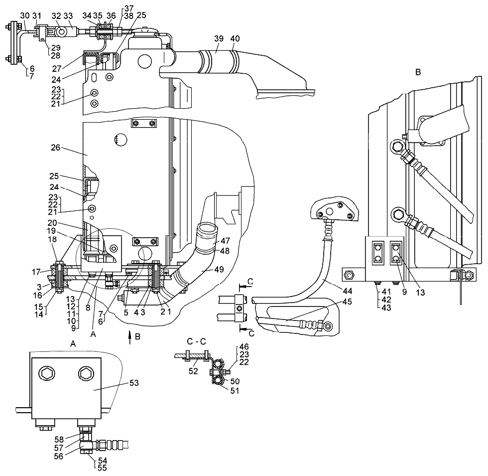 Установка радиаторов (для трактора с «прямым» потоком)