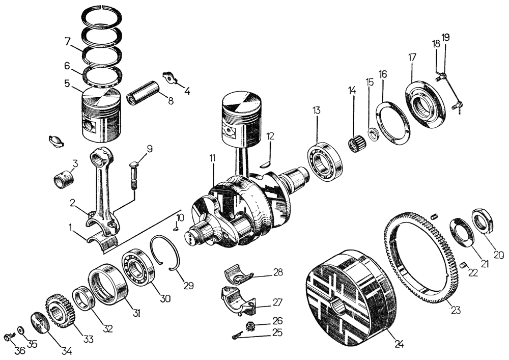 Кривошипно-шатунный механизм пускового двигателя