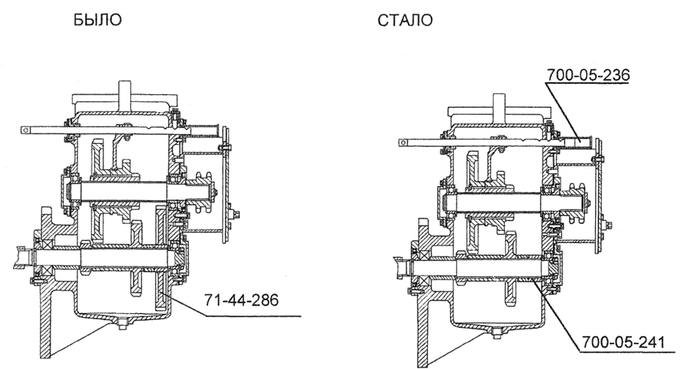 • взамен ведущего зубчатого колеса 71-44-286 установлена втулка 700-05-241;