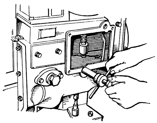 Положите на фланец крышки 16 регулятора прокладку и наденьте крышку втулкой на вертикальный валик регулятора. Легкими ударами молотка посадите крышку регулятора в расточку корпуса регулятора и закрепите ее болтами с пружинными шайбами.