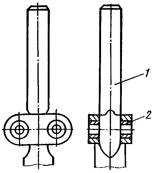 Установите вертикальный валик 1 ( см. рис. 172 ) регулятора на подставку и запрессуйте медным молотком в отверстия ушков валика четыре втулки 2 заподлицо с плоскостью ушков.
