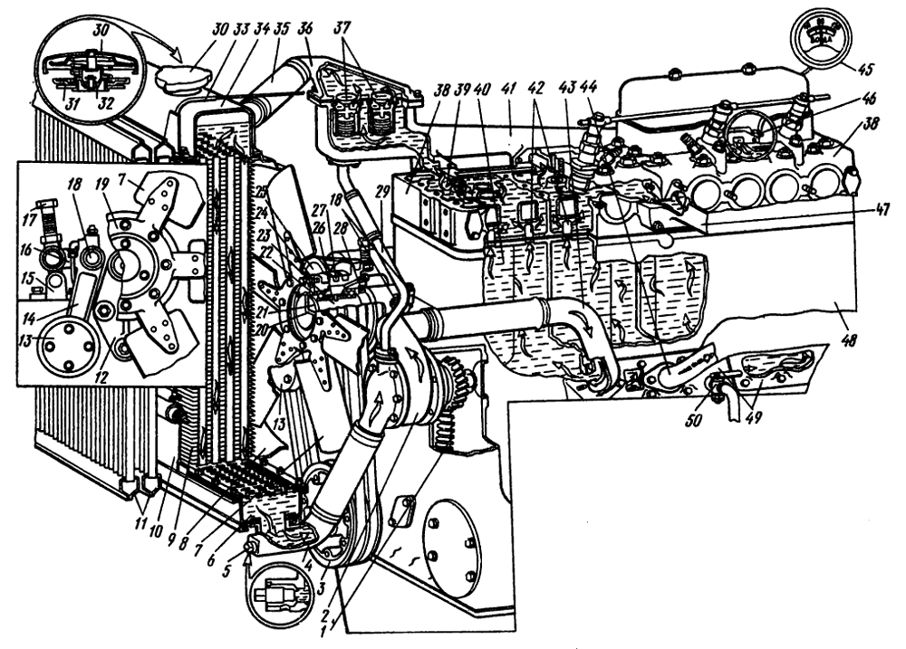 Затем запускают дизель, наружный рычаг регулятора устанавливают в положение, соответствующее максимальной подаче топлива (рычаг акселератора передвигают в крайнее верхнее положение).