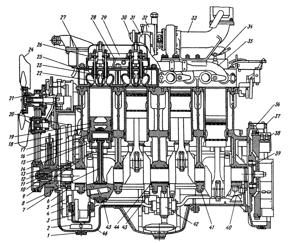 Коленчатый вал дизеля без нагрузки должен вращаться у двигателя Д-160 с частотой 1290— 1340 мин-1, у двигателя Д-160Б— 1250 мин-1; при работе с полной нагрузкой у двигателя Д-160 с частотой 1100—1160 мин-1, обеспечивая мощность 117,8 кВт, у двигателя Д-160Б—1070 мин-1, обеспечивая мощность 103 кВт.