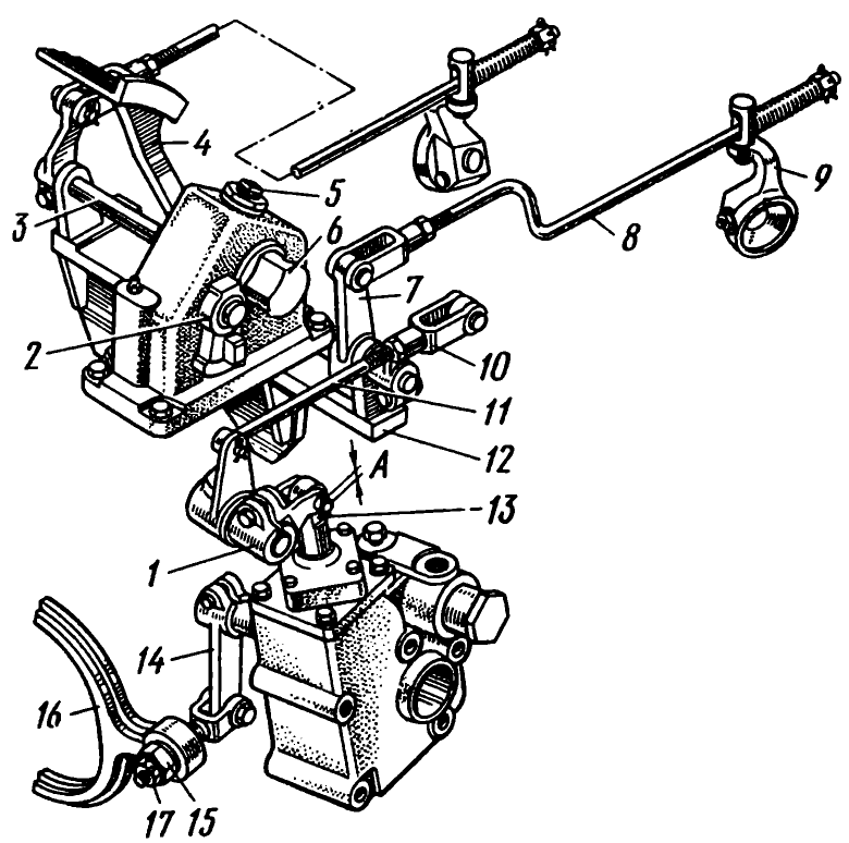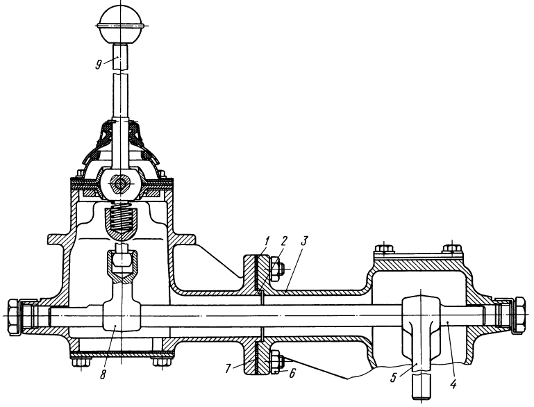 6 — штуцер подвода масла к ведущему валу коробки передач,