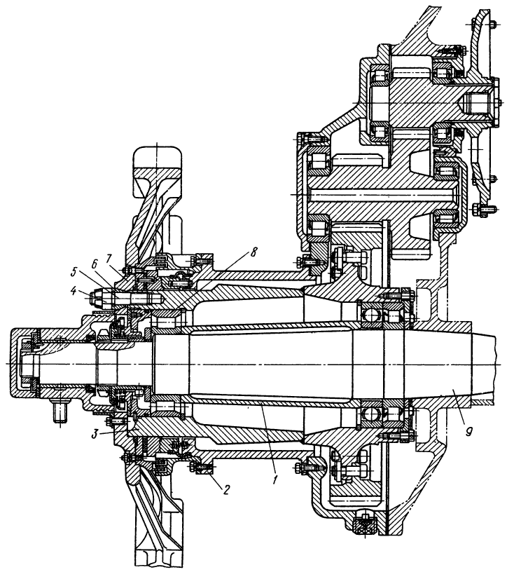 2 — штуцер подвода масла к ведущему валу коробки,